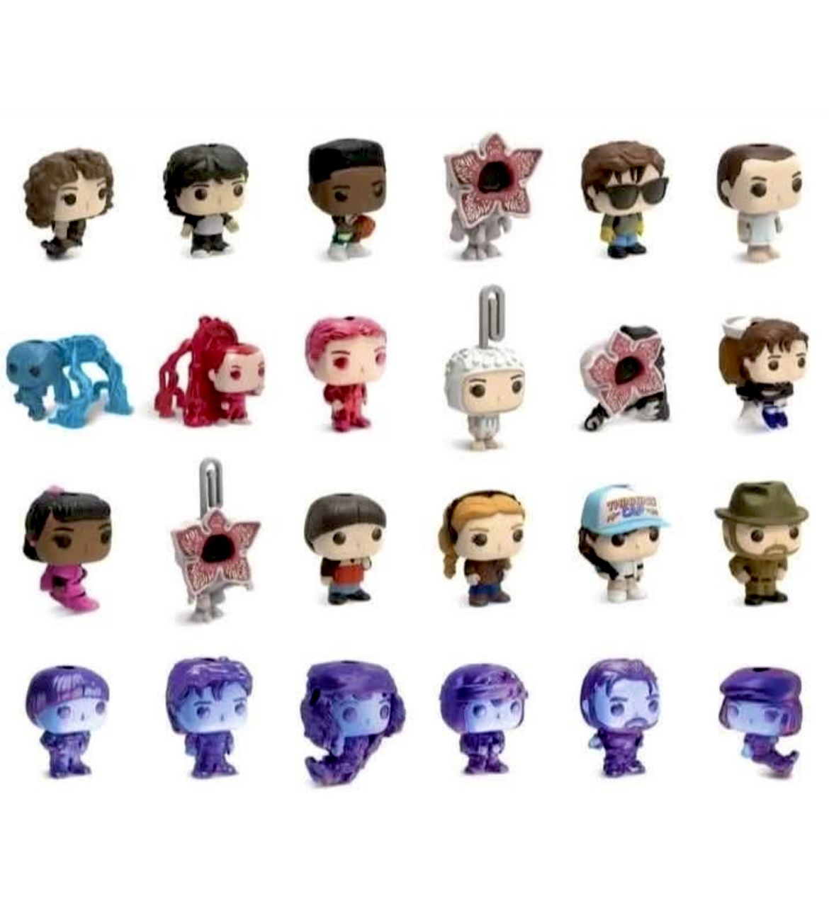 - мини-фигурки персонажей (Элевен, Майк, Дастин, Уил - кстати, самая редкая фигурка, впрочем и в фильме её тоже постоянно искали, и другие),